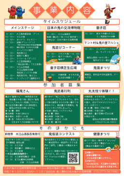そして26日当日は、恒例の鬼武者行列や鬼ミコシ、鬼の里マルシェなどが行われ、ふわふわ鬼や輪投げコーナーなど、小さなお子さまに楽しんでいただけるイベントもありますので、みなさんぜひお越しください♫♪♬